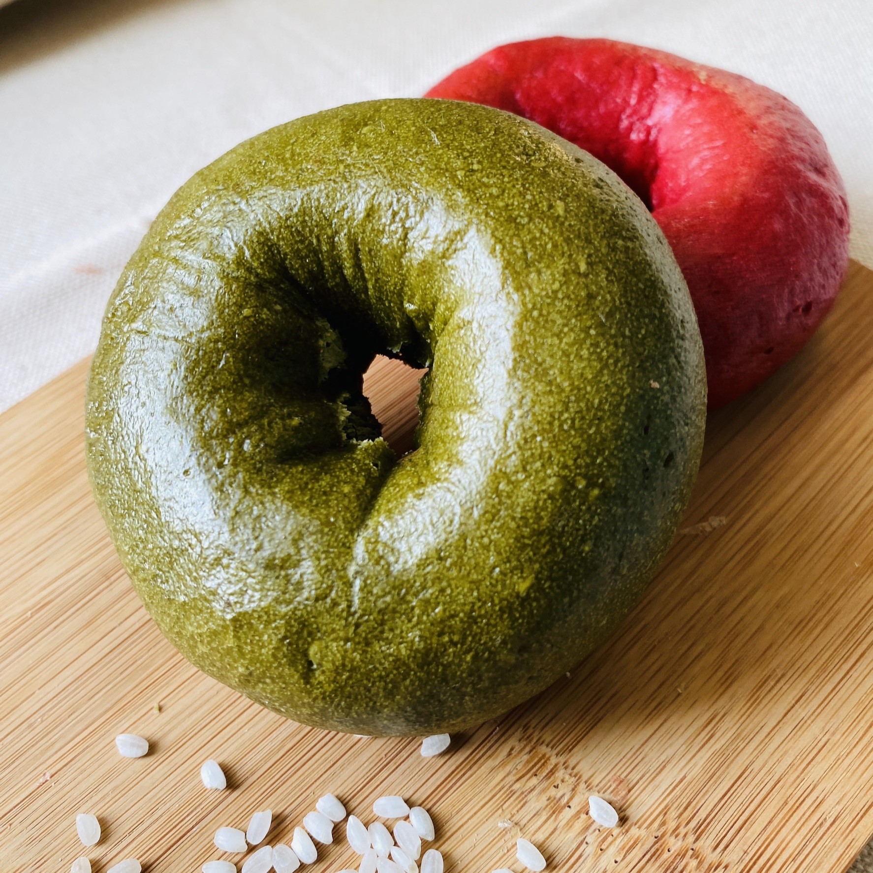 ※米貝果的主基底為純白米跟五穀雜糧,所以不像麵粉製品發酵膨脹大,所以體積小重量重,